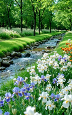 野花组合:如紫花地丁、蒲公英等,自然生长于河畔,增添野趣。