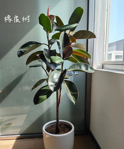 橡皮树是桑科榕属常绿乔木植物,叶片呈长椭圆形,肥厚宽大,亮绿色。橡皮树原产巴西,现广泛栽培于亚洲热带地区,在我国以海南和云南种植较多。橡皮树耐阴,但不抗冻,叶片常绿,是著名的盆栽观叶植物,适合室内美化布置。