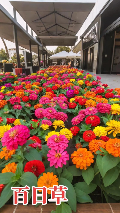 百日草花的颜色非常丰富,作盆栽欣赏,观其花朵,一朵更比一朵高,会激发人们的上进心。