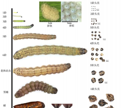 草地贪夜蛾是夜蛾科灰翅夜蛾属的一种蛾。成虫在夜间活动,在植物叶子顶部产约100粒卵,卵阶段是在25℃的温度下持续3天。新孵出的幼虫以卵壳本身为食,然后静置2-10小时。幼虫即毛毛虫更喜欢以新叶为食,由于它们的食性习惯,通常会各自找到一片新叶。
