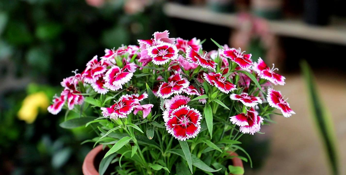 口径适中:盆栽石竹花适合口径15-20厘米的花盆,过大的花盆会导致土壤干湿循环慢,增加烂根风险。每盆可种植2-3株,避免过度拥挤。