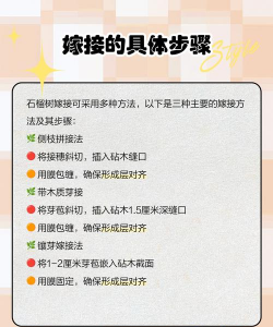 常用切接法,以酸石榴为砧木,春季嫁接,需5-6年培育。选择建议: