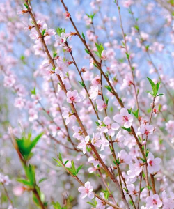 山桃为野生种,果实不可食用,花多为单瓣;而栽培的果桃或观赏桃(如碧桃)多为重瓣,果实可食用。山桃以其早春的花景和多样的用途成为北方重要的生态与经济植物,兼具观赏与实用价值。