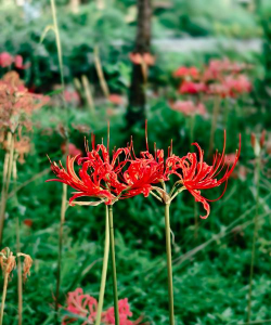 别名与文化象征:因花色鲜红、形态妖艳,常被称为“彼岸花”“曼珠沙华”,在日本文化中与秋分时节关联,象征生死相隔。
