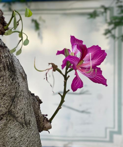紫荆:老枝直接开粉紫色花,密集如花带。