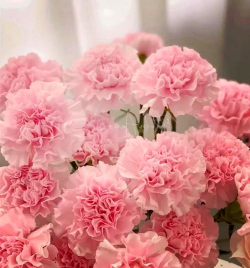 粉色康乃馨的核心寓意是“永远年轻美丽”,尤其与母爱紧密关联。1907年起,粉红色康乃馨成为母亲节的象征,表达对母亲的热烈爱意与深情眷顾。不同深浅的粉色还可延伸出对女性魅力的赞美,如柔媚、细腻等情感。