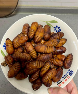 蚕,是蚕蛾的幼虫,丝绸原料的主要来源,在人类经济生活及文化历史上有重要地位。原产中国北部,主食为桑叶,也可用鹅菜补充。茧是由一根长度为300~900米(1000~3000英尺)连续的丝织成的。家蚕的虫及蛹可以食用,并有食疗功效。成虫的蛾不能飞,只是用于产卵以繁殖后代,产卵后即死亡。因为其久远的历史和经济上的重要性,家蚕的基因已成为现代科学的重要研究对象。