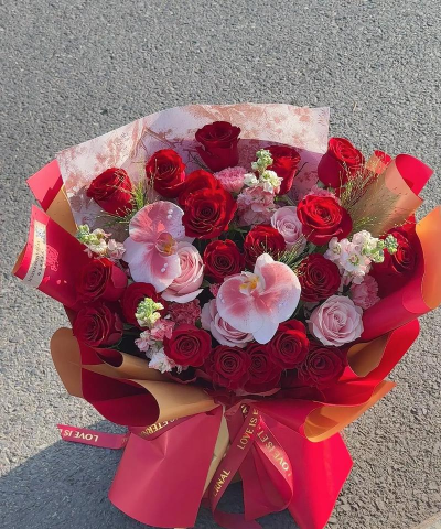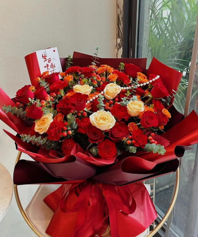 寓意“百年好合”,象征纯洁与永恒的爱情,尤其适合结婚纪念日或表达长久相伴的承诺。多头百合搭配玫瑰更显温馨。