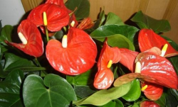 花梗基部带红晕,佛焰苞较圆,花期稍晚于白梗品种,花色以红色为主。