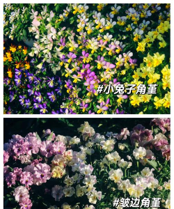 特点:别名蝴蝶花、猫脸花,花期11月至次年4-5月,花朵紫、白、黄三色相间,花量大且花期长。