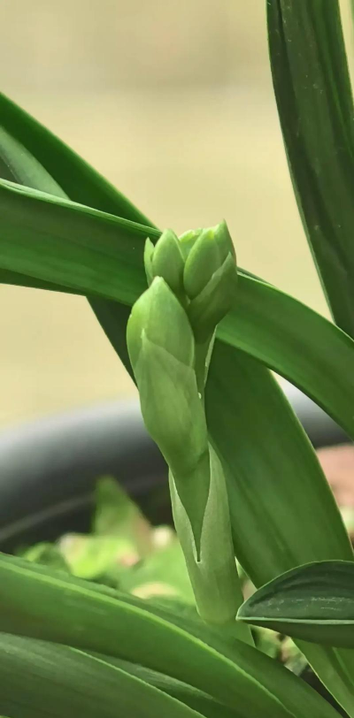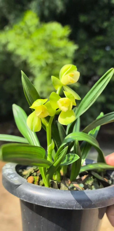 四季兰传统素心名品,叶片坚韧似铁皮,花梗挺立如铁筋,香气清冽持久,适合新手养护。
