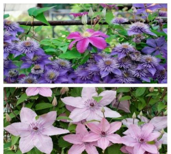 铁线莲被誉为“藤本皇后”,花色丰富,耐寒性好,适合制作花架或墙面装饰。