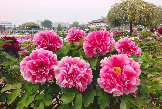 牡丹品种 :如“曹州牡丹甲天下”中的红牡丹、紫牡丹等,花型多样。