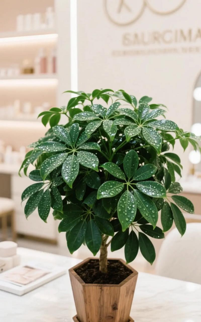 鸭掌木(鹅掌柴)鸭掌木的复叶由6-8片小叶组成,整体形状像张开的手掌,四季常绿,常作为室内观赏植物栽培。