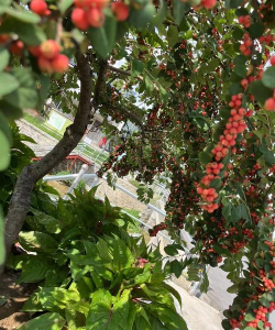 特点:春季开红色花朵,秋季结籽粒饱满的球形果实,象征多子多福。
