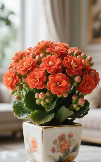 特点:花朵直径可达3厘米,完全重瓣,花瓣层叠如牡丹,初开白色,晒后渐变为粉色,带有喷砂质感。花量大,花期从11月持续至次年春末,被誉为“长寿花界的贵族”。