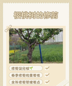 1、修剪时间:樱桃树的修剪时间是5~6月、9月或12月。2、萌芽修剪:需将主枝和侧枝长出来的竞争芽剪掉。3、疏枝:樱桃树生长期,需将其一年生或多年生的枝条从基部剪掉,注意疏枝不可过多。4、枯枝:樱桃树结果之后,需及时清理病枝、枯枝,避免养分的消耗。