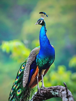 孔雀有2属3种。其中孔雀属2种,全长达2米以上,其中尾屏约1.5米,为鸡形目体型最大者。头顶翠绿,羽冠蓝绿而呈尖形,尾上覆羽特别长,形成尾屏,鲜艳美丽,真正的尾羽很短,呈黑褐色。雌鸟无尾屏,羽色暗褐而多杂斑。