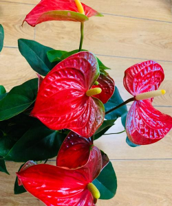 红掌 :佛焰苞形似手掌,中心黄色肉穗,常年开花。