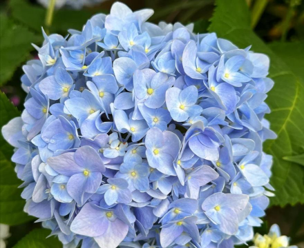 绣球花花朵由无数小花密集组成球状花序,花色丰富(紫、粉、黄等),花期6-8月,喜温暖湿润环境。