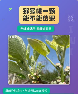 单株猕猴桃不能结果。猕猴桃是雌雄异株的植物,一雌一雄才能结果。植物的雄花和雌花分别长在不同的植株上,植物也是有性别的,雌树开雌花,里面长着雌蕊,雄树开雄花,里面长着雄蕊。雌树结果,雄树不结果。如果只有一株猕猴桃,那就不能传粉,也就无法结出果实和种子来。