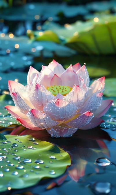 睡莲无莲蓬,花瓣较窄,花色更丰富;荷花花朵中心有凸起的莲蓬,花瓣宽大。睡莲因其优雅的花姿和净化水体的功能,被誉为“水中女神”,广泛应用于园林水景和庭院装饰。