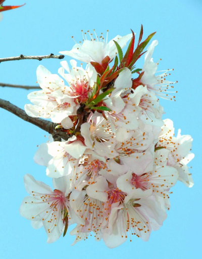 梅花:长安唐村春季有50亩梅花盛开,虬枝如狂草,暗香浮动,适合汉服摄影。