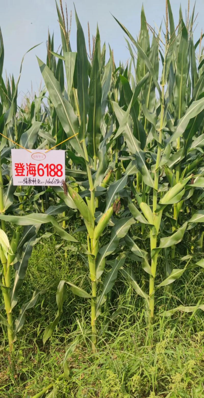 登海6188玉米种株型紧凑,株高252厘米,穗位高98厘米,成株叶片数19片左右。果穗长筒型,穗长18.61厘米,穗行数14-16行,穗粗5厘米,穗轴红,籽粒黄色、马齿,百粒重34.44克。2017年生产试验,平均亩产678.9千克,比对照郑单958增产5.7%。
