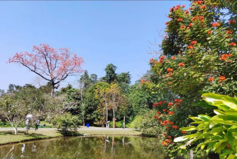 特点:苏木科乔木,花绯红色,盛开时如火焰团簇。原产东南亚,喜高温湿润环境,花期春季。