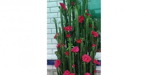 龙骨的茎干呈三棱柱状,分枝密集,花朵点缀其上时更显独特。部分品种(如白龙骨)的花朵淡雅秀气,与枝干搭配和谐。