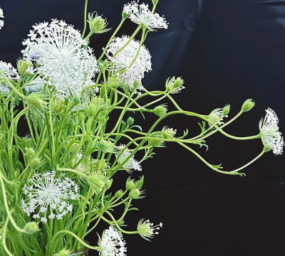 整枝开花,枝条自由舒展,适合自然系花束或插瓶,花期持久且花朵凋谢后仍保留绿叶。