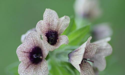 天仙子花心紫色筋脉似隐藏的邪恶,寓意外表华丽内心狠毒,象征复仇者的伪装与恨意。
