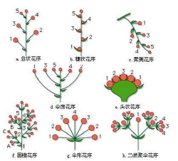 特点:顶端或中心花先开,开花顺序由上至下或由内向外。
