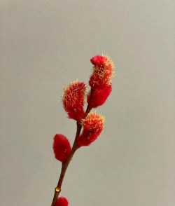2、处理花枝:将银柳基部的叶片剪去,用利刀切成斜口,保持切口光滑,整齐,这样能增大吸收面积,以利于吸收水分和养分。
