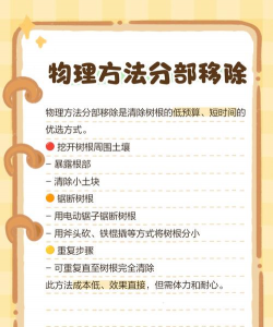 树根处理的方法多种多样,根据不同的需求(如环保性、效率、成本等),可选择以下主要方式: