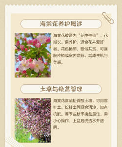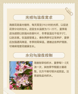 海棠花的打理需要根据其生长习性和季节变化进行综合管理,包括光照、浇水、施肥、修剪及病虫害防治等方面。以下是具体的管理要点: