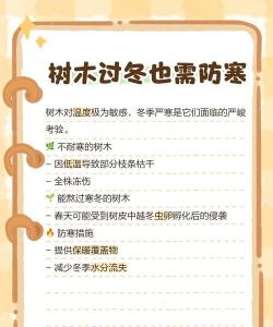 积雪管理:及时打落树冠积雪,防止枝条压折,但根部积雪可保温。通过结合自然适应与人工干预,树木能有效应对冬季挑战。具体措施需根据当地气候、树种耐寒性及树龄调整。