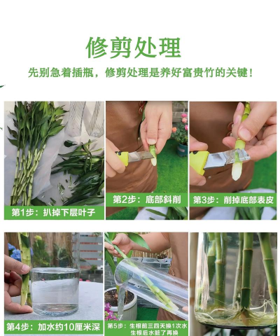 在富贵竹生长期间,需在每年春季3~4月份时,使用消毒后的锋利剪刀,修剪掉长势过差的枝叶记忆枯黄的枝叶,以减少不必要的养分消耗,此外还需将富贵竹生长过长的枝条进行短截,促进新枝的萌发。