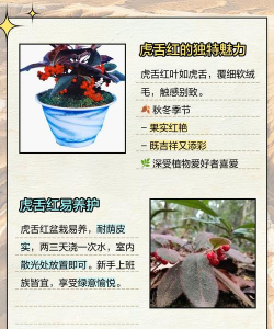 养殖方法·:土壤,养殖虎舌红时,可将腐叶土、泥炭土、沙土混合制作成栽培的基质;光温,日常养护虎皮红时,需将环境温度控制在15~25℃之间,并给予全天候的散光照射;水肥,夏季气温较高时,需每隔2~3天浇一次水,并每隔半个月施加一次稀释后的液肥。注意事项:日常养护虎皮红时需做好病害的防治工作。