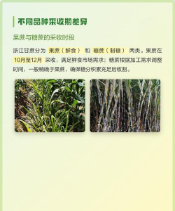 鲜食甘蔗:更注重水分和甜度平衡,11-12月收割最佳,此时口感清甜多汁。