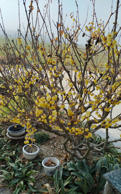 细长花穗与腊梅形成清新雅致的组合,适合园林景观。