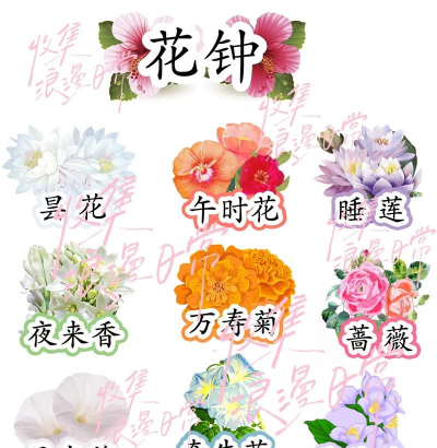 不同地区因气候差异,花钟组合可能不同。例如,中国特色的花钟包含14种花(如午时花、大爪草等),而国际通用组合以上述10种为主。