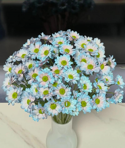 绿巴黎长寿花:白绿色渐变花瓣,阳光照射后泛粉,花型重瓣层叠。
