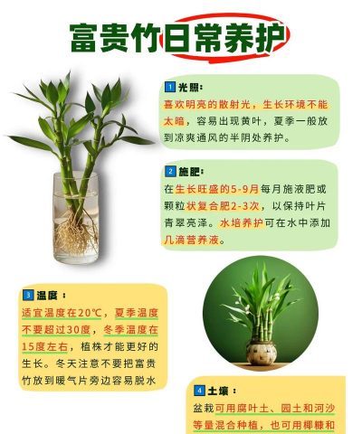 竹子适宜在不粘的中性或偏酸性的土壤里生长,不能浇水过于频繁让它的根部积水,施肥主要是在生长期以尿素为主,尽量将它养护在可以长期接触到温柔散光的地方,这样就有利于植株的生长,竹子才能生长得更为茂密。