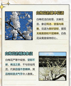 白梅花独自在严寒中傲然绽放,不畏严寒矗立寒风之中,有着高尚的品质,古人曾将白梅花喻为清明廉洁之士,不与世俗同流合污,不受外界的诱惑而迷失自己,无论环境有多么的恶劣依旧坚持自己的内心。