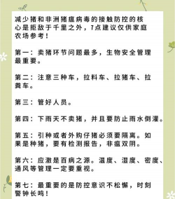 1、坚持自繁自养,严禁外购商品猪,引种时要从无疫情地区引进,引进后必须隔离检疫观察1个月以上,猪瘟强毒抗体阴性,猪瘟疫苗免疫后方可进场。2、养猪场及其周围环境的定期消毒;建立缓冲隔离带;定期监测水污染;杀死软蜱、蚊子、苍蝇、老鼠和鸟。3、确保猪圈适当的温度湿度,并确保猪圈能接受太阳光照射,为猪提供优良的生长发育环境。