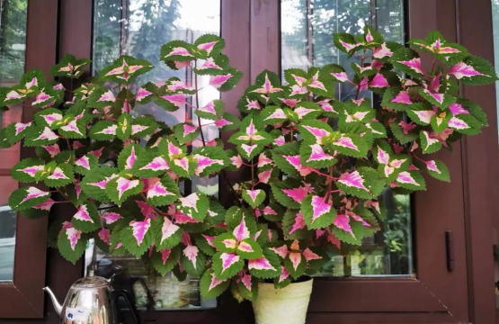彩叶草(五彩苏):唇形科植物,叶色丰富多变,有红、黄、紫等复色,耐修剪且易养护,适合花坛或盆栽。