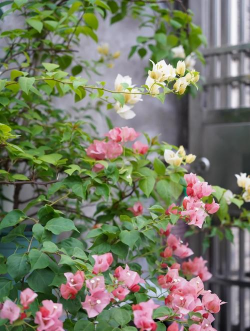 藤本类:紫藤(如嘉兴小蓬莱公园的紫色花瀑)、牵牛花等。
