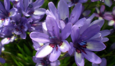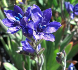 红蓝狒狒草(Babiana rubrocyanea):紫蓝色花瓣中心带胭脂红斑。