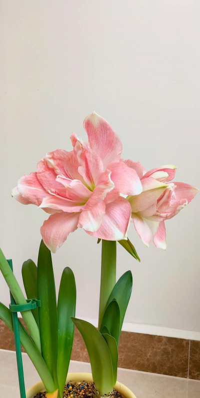 百合:朱顶红花型似百合,两者搭配可强化优雅气质,尤其适合白色朱顶红与粉色百合的组合。